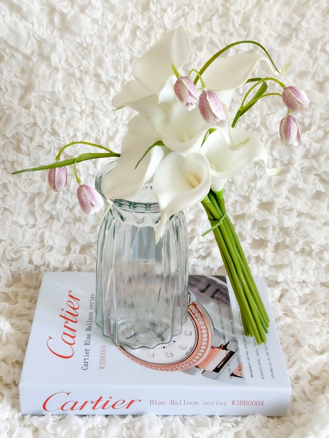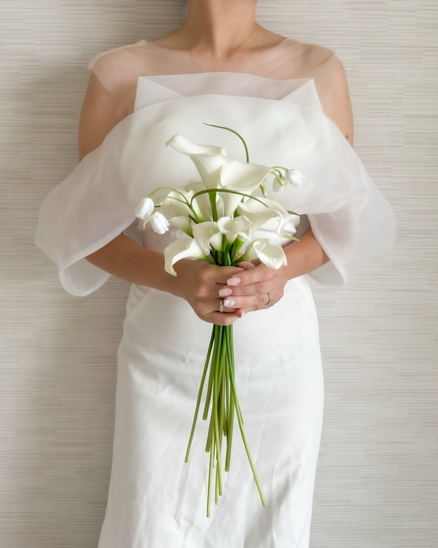 大人気花材のカラーリリィと胡蝶蘭を使用した、シンプルながらも華やかさのあるアームブーケです。 ブーケはさらっと持ちたいな♡という花嫁様にオススメです。 【商品内容】 お任せブートニア付きの完成品販売です。 リボンに関しまして➡︎ ブーケはもちろん、お召しになるドレスに合わせていただきたいため、事前にInstagramのDMへお問い合わせください。 リボン決定後、お仕立て出来次第、数日中に発送可能です。 【アーティフィシャルフラワーについて】 当店ではアーティフィシャルフラワー(高品質な造花)のみを使用してブーケをお作りしております。 製品の特性上、直射日光に長期間当たってしまうと日焼けして色が褪せてしまうことがございます。 陽当たりの良い場所は避けて保管くださいませ。 生花と同様に同じ種類のお花でもお花の開き方や形に若干の違いや個体差がございます。 お花の種類によって、お花が取れやすいことがございます。 万が一取れてしまった場合は、接着剤で修復可能でございますので一度ご相談くださいませ。