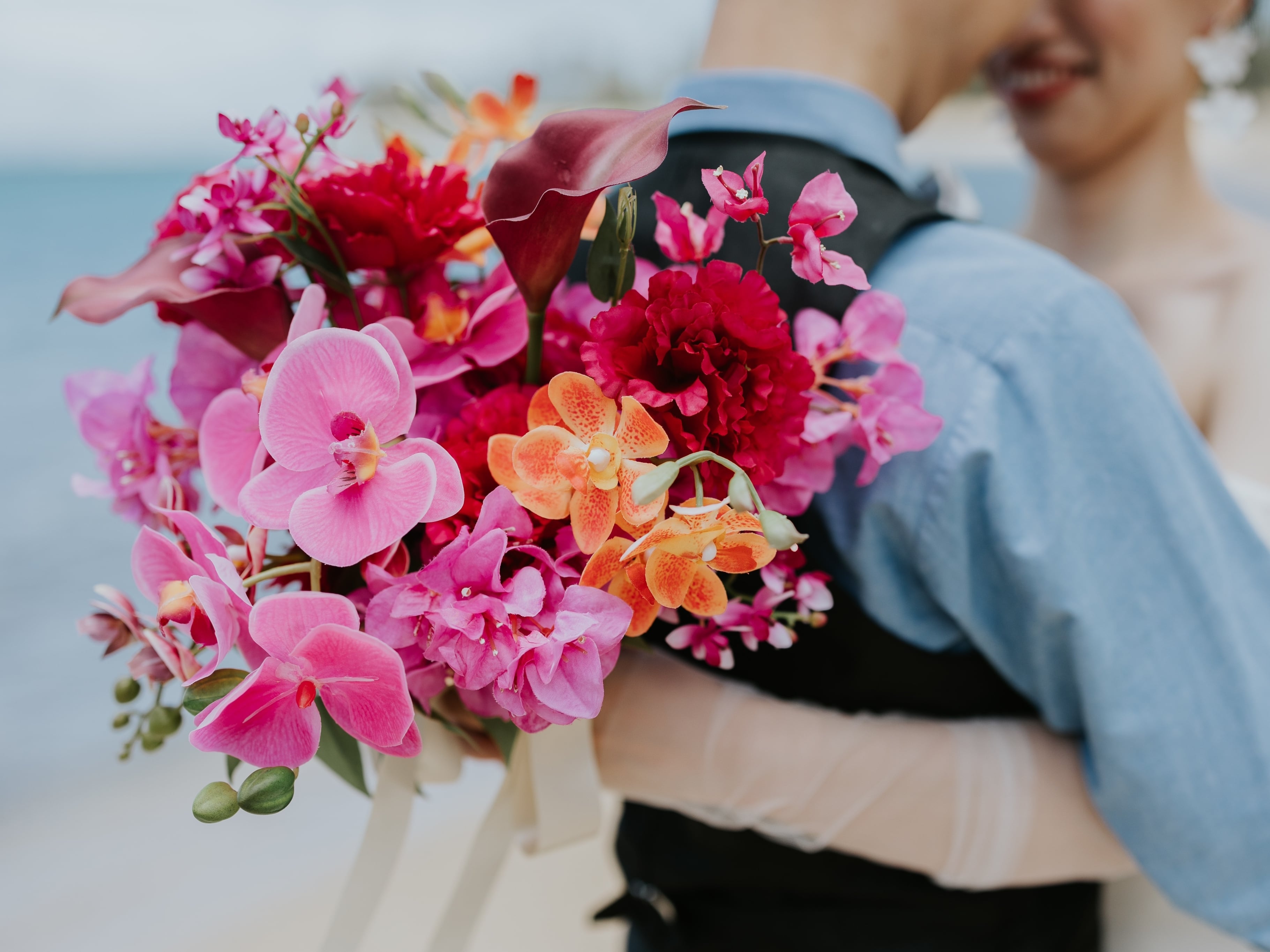 可愛いよりもカッコいいがお好みの花嫁様にオススメな、大人リゾートブーケです。 リゾートはもちろん、城ヶ崎や千畳敷などの前撮り、ブラックドレスなどとの相性も抜群です。 【商品内容】 お任せブートニア付きの完成品販売です。 リボンに関しまして➡︎ ブーケはもちろん、お召しになるドレスに合わせていただきたいため、事前にInstagramのDMへお問い合わせください。 リボン決定後、お仕立て出来次第、数日中に発送可能です。 【アーティフィシャルフラワーについて】 当店ではアーティフィシャルフラワー(高品質な造花)のみを使用してブーケをお作りしております。 製品の特性上、直射日光に長期間当たってしまうと日焼けして色が褪せてしまうことがございます。 陽当たりの良い場所は避けて保管くださいませ。 生花と同様に同じ種類のお花でもお花の開き方や形に若干の違いや個体差がございます。 お花の種類によって、お花が取れやすいことがございます。 万が一取れてしまった場合は、接着剤で修復可能でございますので一度ご相談くださいませ。
